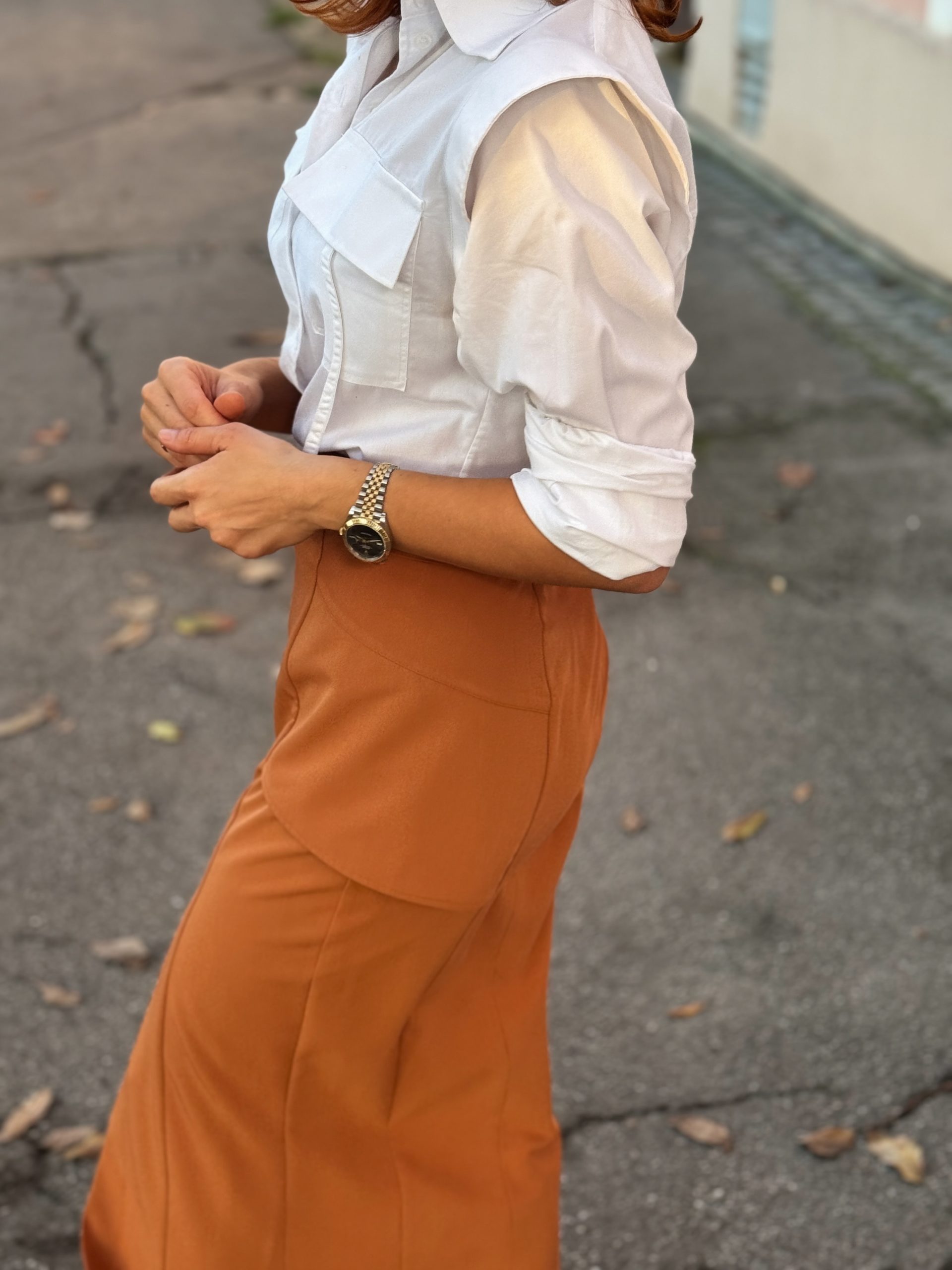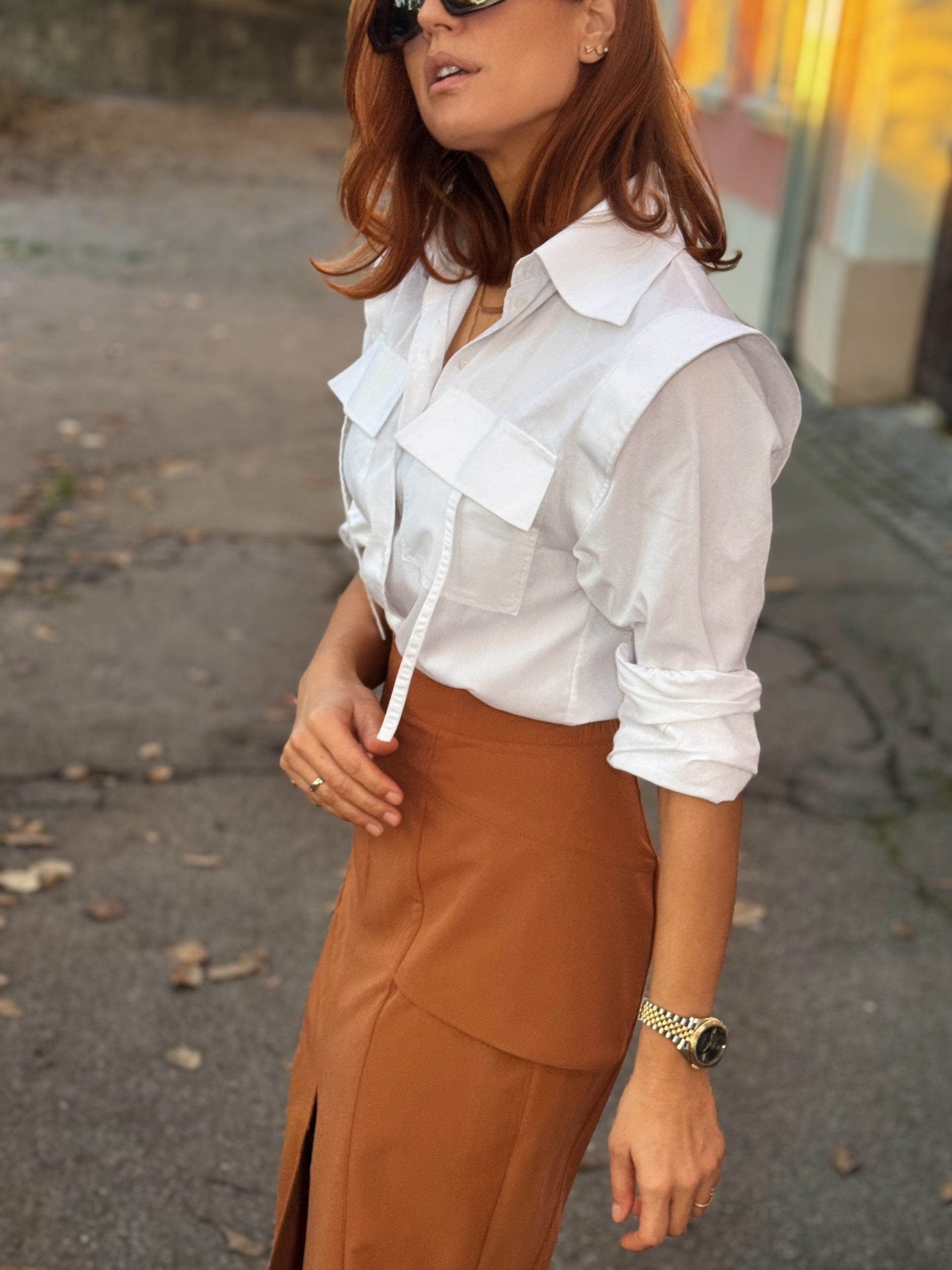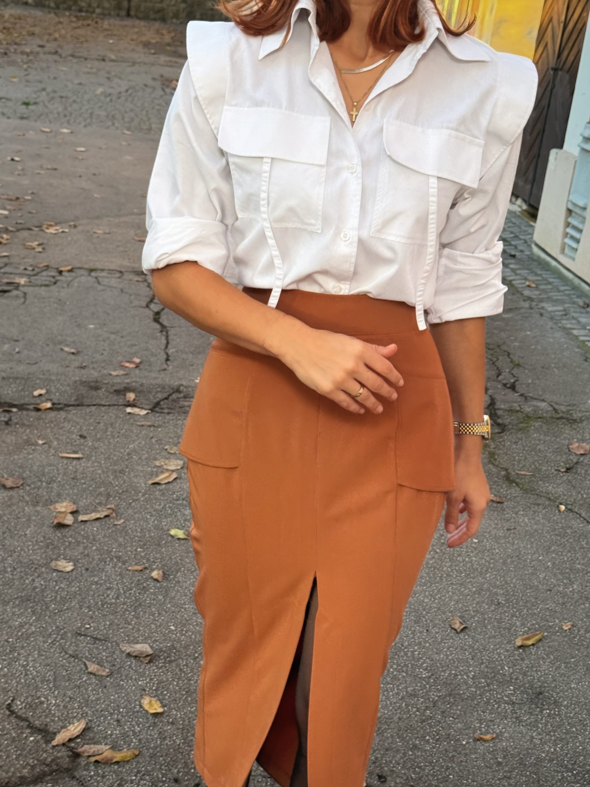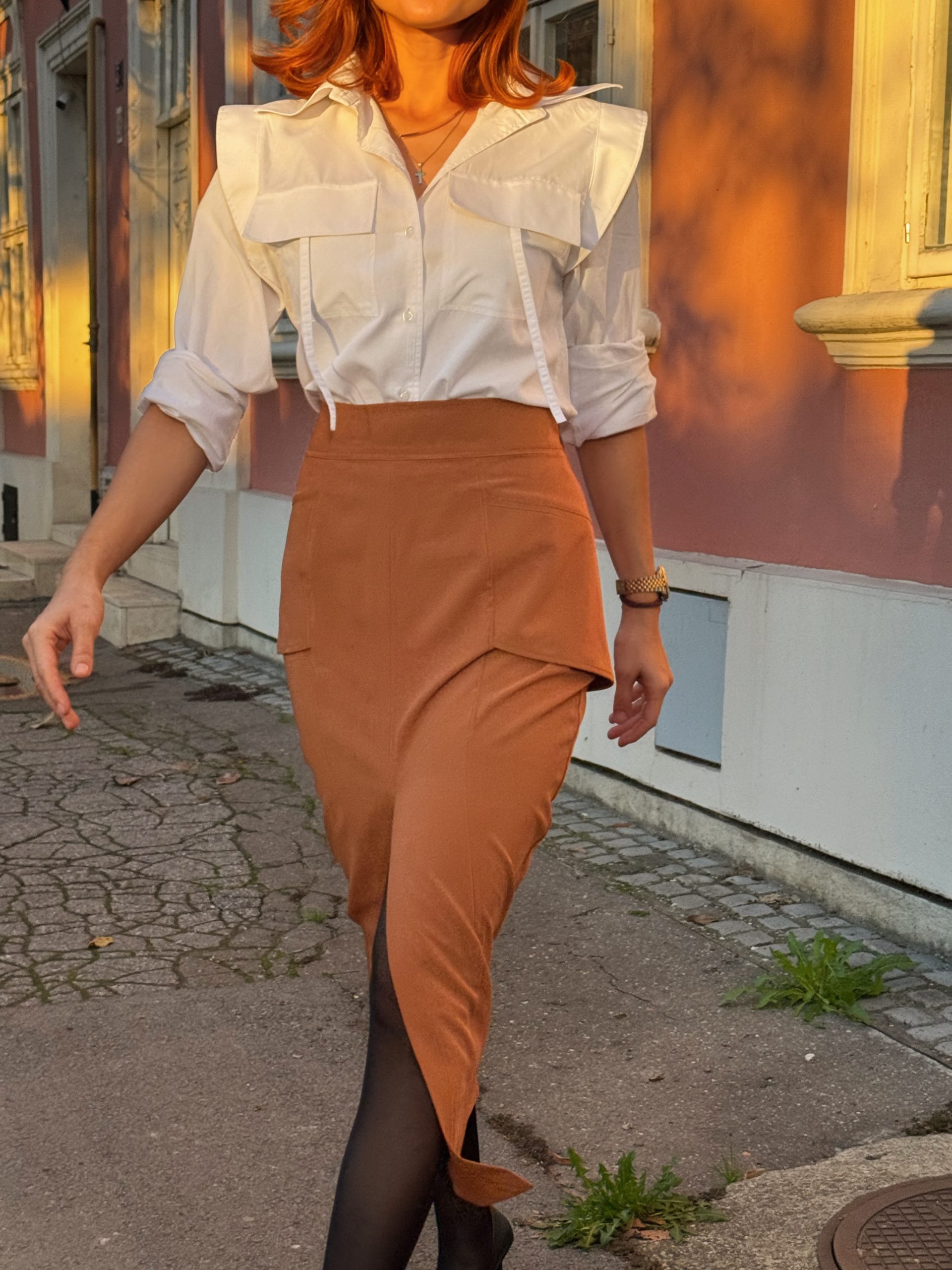 Elegantna midi suknja visokog struka sa čistim linijama i efektnim prednjim izrezom. Mekan, prijatan materijal i suptilni krojački detalji daju joj moderan i ženstven izgled. Idealna za svakodnevne i poslovne kombinacije.
